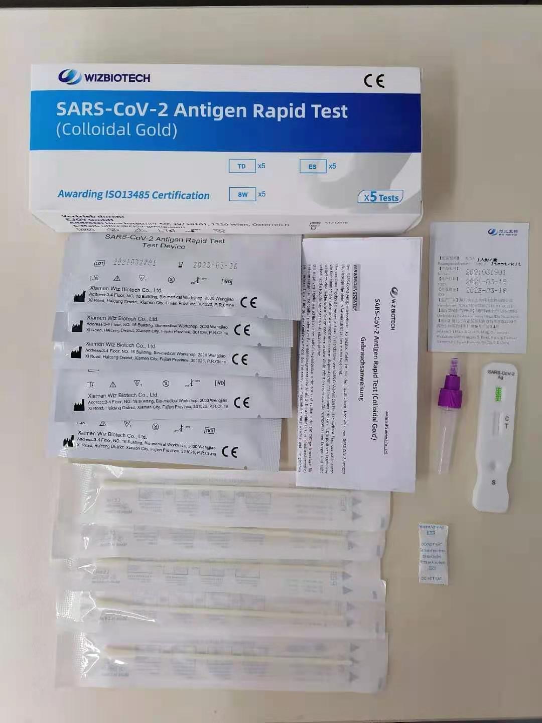 We buy the goods directly from the manufacturer in very large quantities so that we can guarantee our customers the best price. We are a direct importer and have the exclusive sales rights in Austria, Czech Republic and Hungary for the tests by WIZ Biotech. In addition, our tests can detect the English, South African and Brazilian mutations.